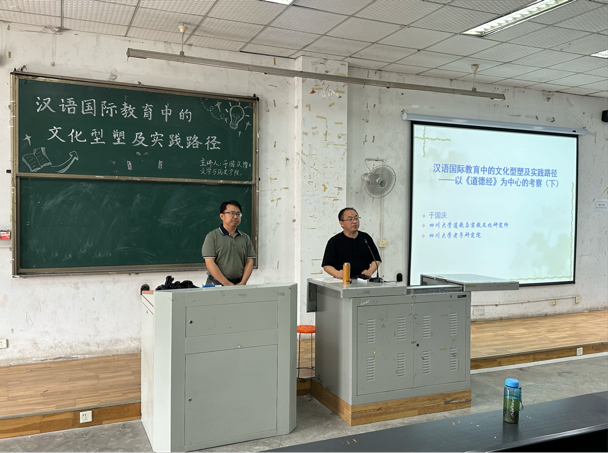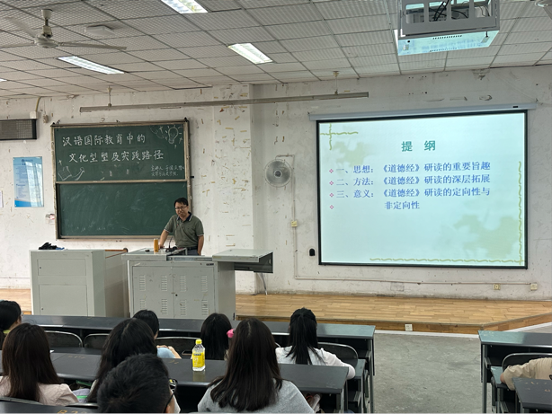 为进一步拓宽汉语国际教育专业的实践路径,6月6日,文学与历史学院在至善楼201举办了“汉语国际教育中的文化素养及实践路径——以《道德经》为中心的考察”研习讲座。本次讲座由杨观院长主持,特邀四川大学道教与宗教文化研究所研究员、博士生导师于国庆主讲,汉语国际教育专业相关骨干教师以及2021级、2022级汉200余名同学到场聆听。