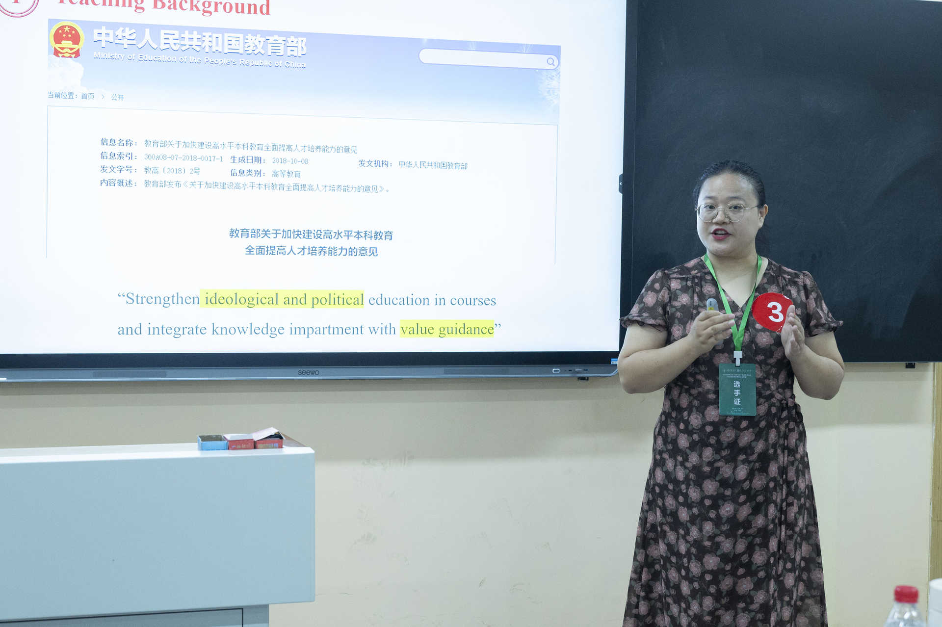 赵梓伊团队以“大国支柱”为教学主题,在说课展示中聚焦中国工程科技领域的重大成就,通过双语教学场景构建与案例剖析,将科技自信与家国情怀融入语言能力培养,实现知识传授与价值引领的同频共振。何雨琴团队则以中西医文化对比阅读为切入点,深挖传统医学智慧中的文化内涵,引导学生在文化对比中增强文化认同。