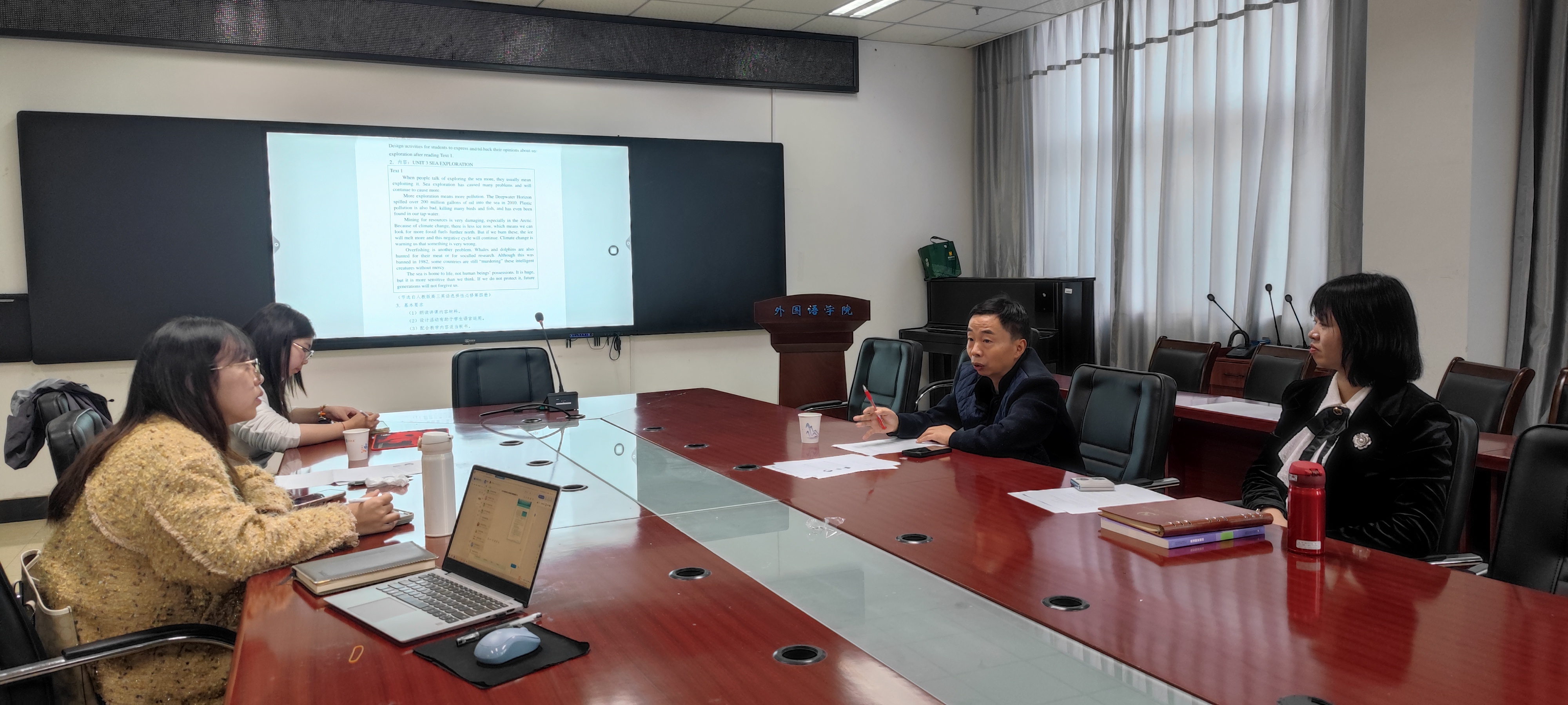 近日,外国语学院2022级邹佳君同学成功晋级川渝第四届师范生教学能力大赛决赛。为进一步优化其参赛教学设计、提升备赛针对性,2025年10月22日下午,学院在知行楼532室组织赛事指导会,邀请绵阳实验高级中学正高级教师廖斌莅临指导,学院副院长苟萍,教学法团队教师尹国杰、赵梓伊共同参与指导工作。