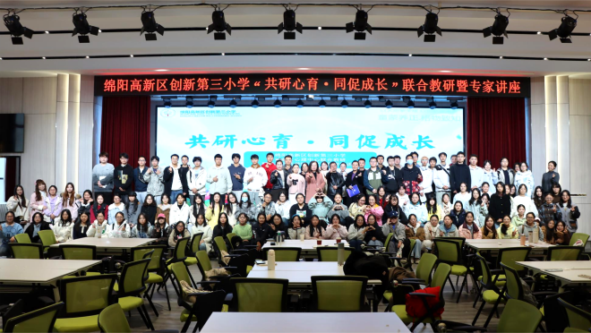 为深入推进高校专业建设与基础教育实践深度融合,健全校地协同育人机制,近日,绵阳师范学院心理与社会学院组织应用心理学专业师生代表,赴绵阳高新区创新第三小学开展“共研心育・同促成长”联合教研暨专家讲座活动。创新第三小学部分师生、高新区心理健康中心专家及授课团队、心理与社会学院吕林副教授、肖俏老师及随行学生、区内各学校教师代表共同参与此次活动。
