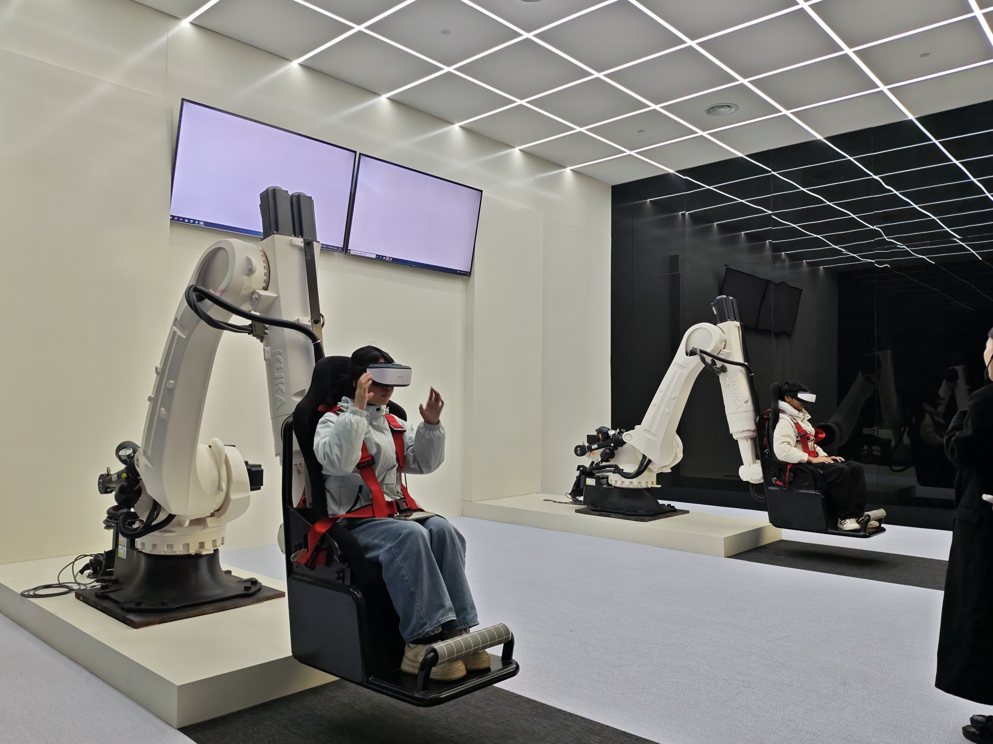 在绵阳科技城新区涪城片区展厅,同学们首先观看了园区发展宣传片,系统了解了绵阳工业园的产业布局、发展规划与创新生态。随后,在讲解员的带领下,大家依次参观了各展区,并通过VR互动体验等现代化展示手段,沉浸式领略了园区在电子信息、智能制造等领域的科技成果与产业应用。